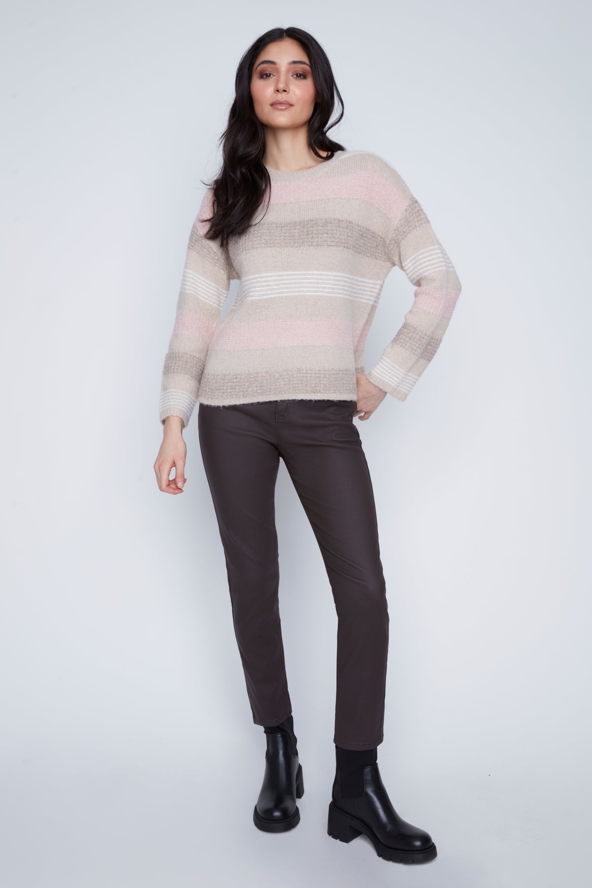 Ce Chandail en Tricot à Rayures de la compagnie Coco Y Club est la pièce essentielle pour un look chic, douillet et intemporel. Il offre une chaleur confortable grâce à son mélange de fibres de haute performance et son motif à rayures est sublimé par la couleur Latté qui ajoute une touche de douceur et de neutralité à votre tenue.