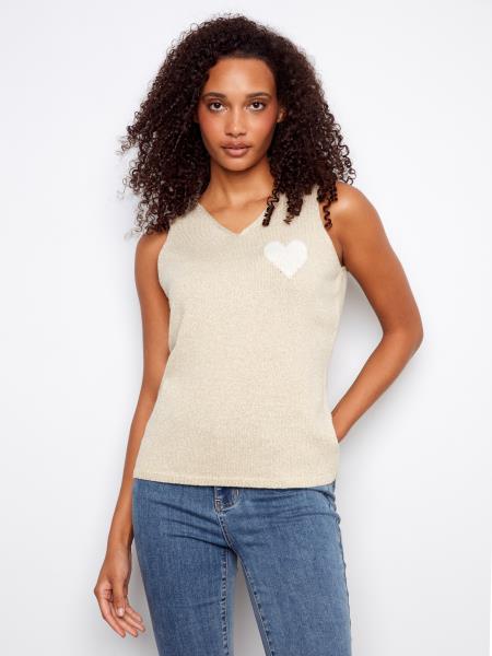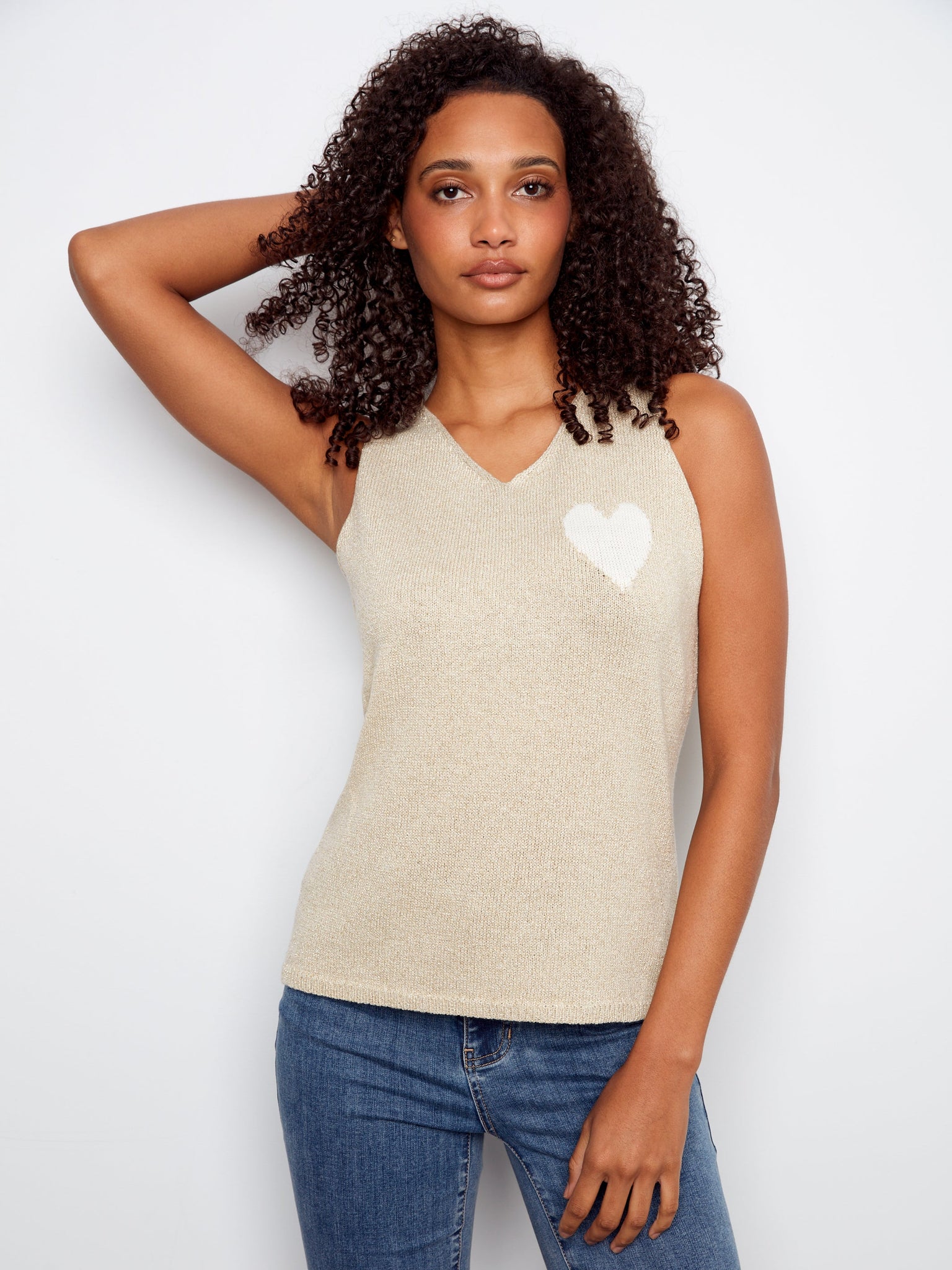 Camisole en Tricot Dorée avec Coeur Blanc au devant