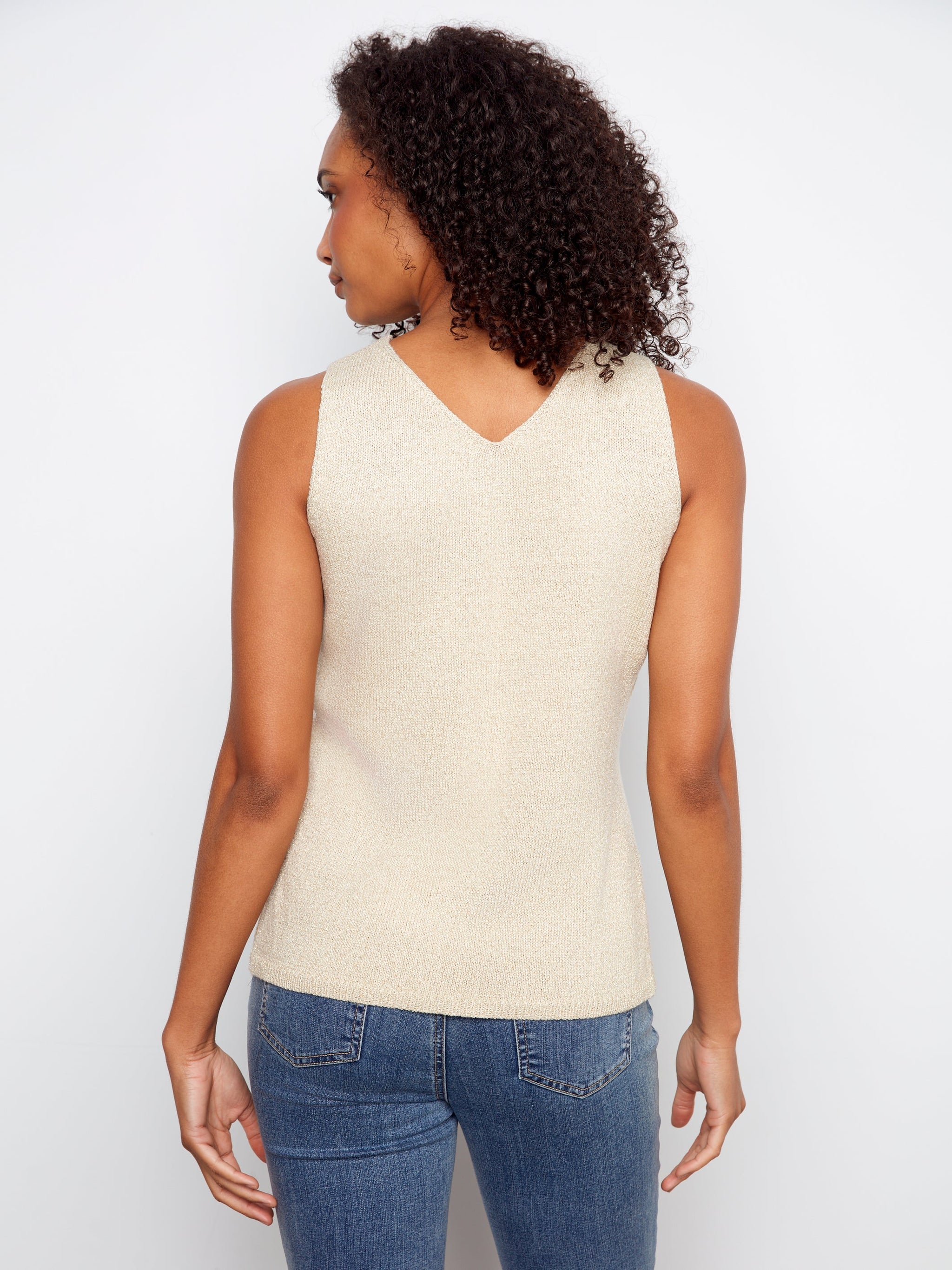 Cette camisole en tricot dorée de Charlie B. se distingue par son joli cœur blanc au devant, qui ajoute une touche féminine et élégante. Confectionnée dans un tissu composé de 50 % acrylique et 50 % polyester, elle offre un porté agréable et une belle tenue. Sa couleur or apporte un effet chic tout en restant facile à agencer. Polyvalente, elle se porte aussi bien avec un jeans pour un look décontracté qu’avec un capri blanc ou un pantalon de lin pour une allure plus élégante. Une belle pièce à avoir pour les sorties.