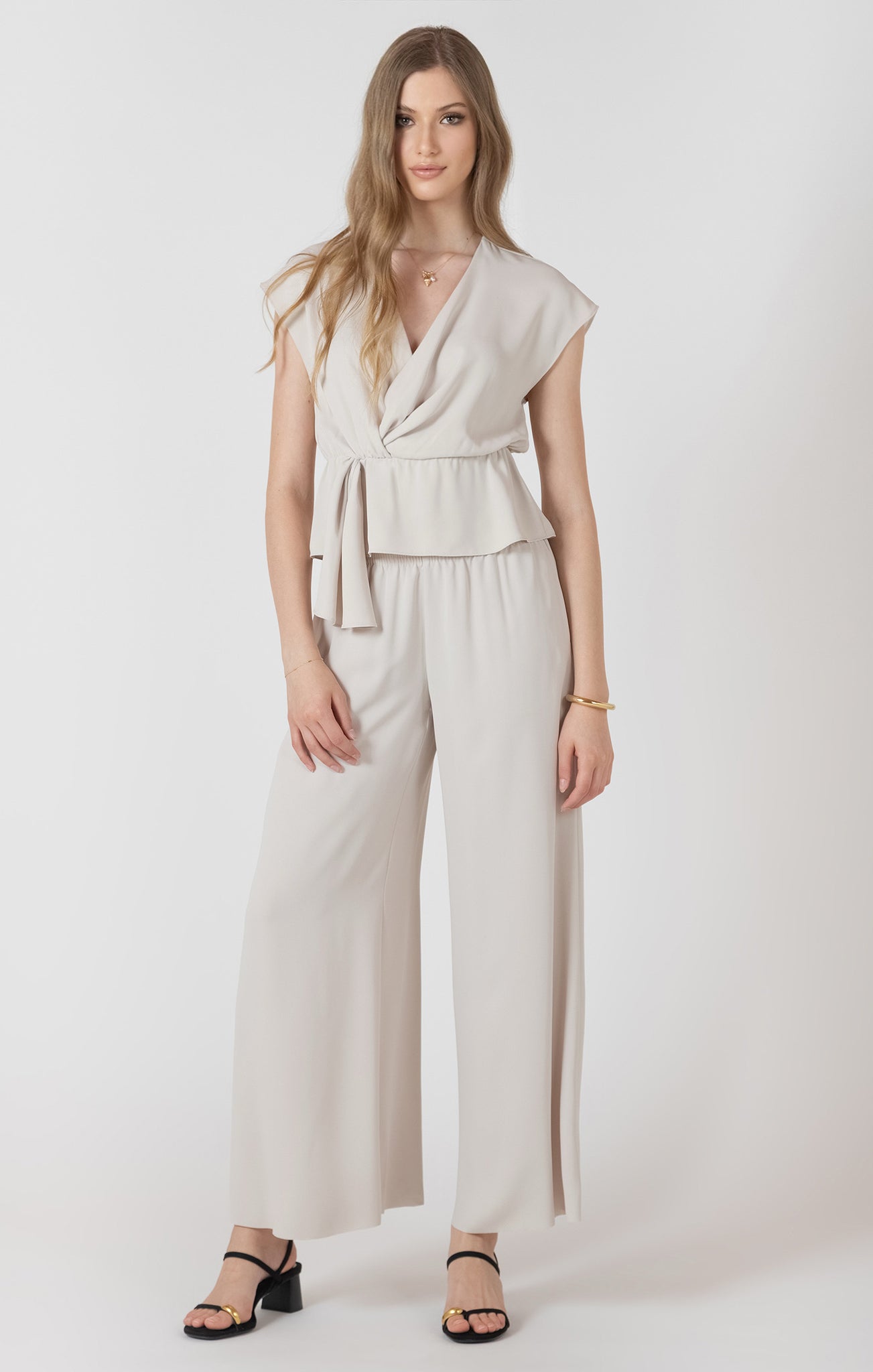 Ce haut drapé à col en V propose une allure élégante et fluide, facile à porter au quotidien. Confectionné en 100 % polyester, un tissu infroissable idéal pour les valises et les déplacements, il conserve une belle tenue sans nécessiter d’entretien particulier. Son drapé met en valeur le col en V avec douceur, tandis que sa couleur perle apporte une touche lumineuse et facile à agencer. Confortable et polyvalent, il convient autant pour le travail que pour les sorties.