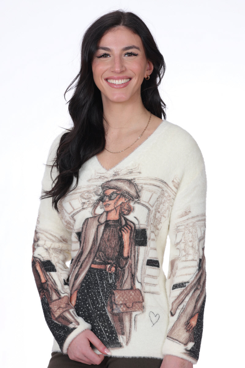 Chandail Effet Peluche Col en V